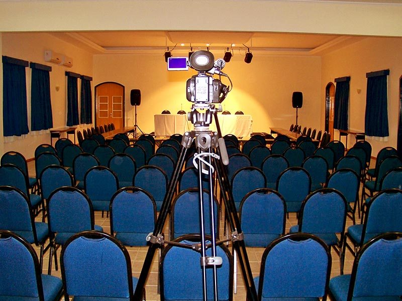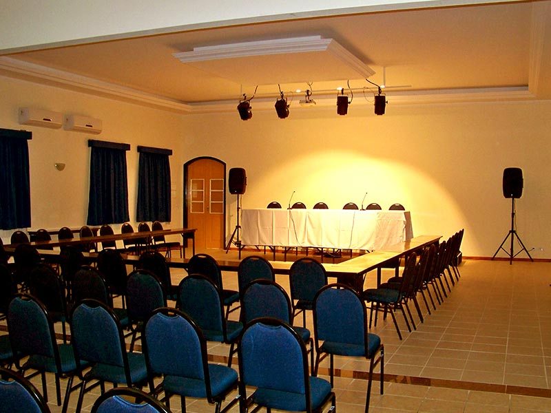 - Dispomos de sala de convenção e de eventos com 200 m² de área, pé direito de 3,5m de altura, ar condicionado tipo Split;