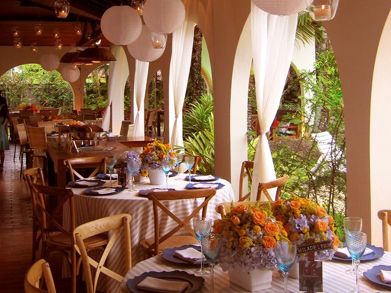 Espaço para festas de casamento com vistas para jardins e piscina. Contamos com fornecedores para decoração, doces e bolos, conjuntos musicais e outros serviços especiais. Consulte também nossas condições de serviços e preços para Dia da Noiva e Lua de Mel.