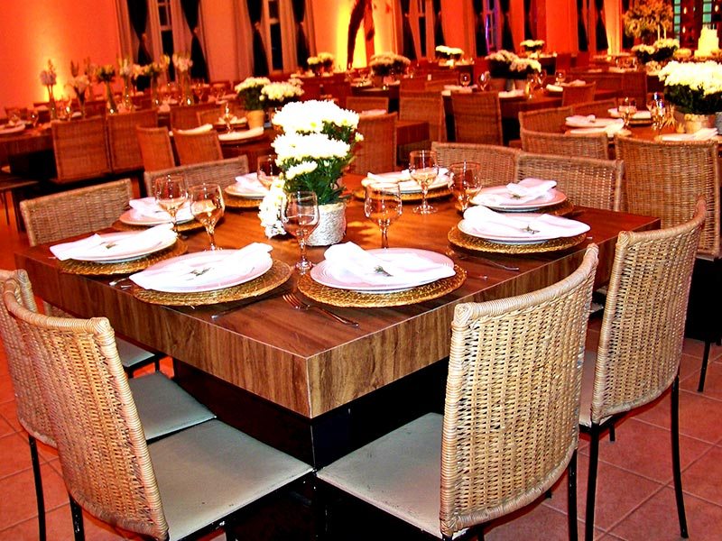 Dispomos de uma grande infra estrutura para seu evento! Faça um orçamento conosco! Casamentos, bodas, aniversário, coquetéis, evento corporativo, almoços de grupo, confraternizações etc. Temos o nosso próprio Restaurante e contamos com fornecedores para decoração, doces e bolos, conjuntos musicais e outros serviços especiais. Consulte-nos sobre aluguel de equipamentos e outras formas de montagem das salas.